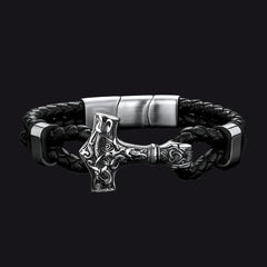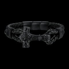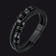 Viking Black Engraved Leather Braided Wristband Bracelet for Men