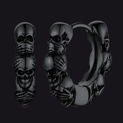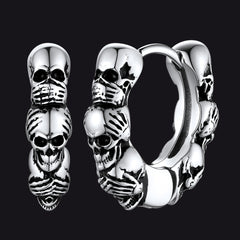 Sterling Silver Skulls Hoop Huugie Earrings For Men