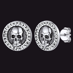 Sterling Silver Runes Skull Earrings Studs For Men