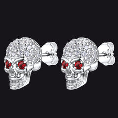 Sterling Silver Gothic Skull Diamond Stud Earrings For Men