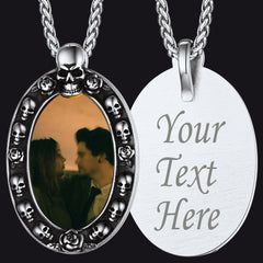 Personalized Photo Pendant Necklace with Skull for Men Women