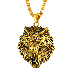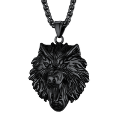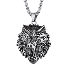 UNLEASH YOUR INNER ALPHA with this stunning wolf head pendant crafted from solid 316L stainless steel. Featuring intricately carved details from snarling teeth to textured fur, this pendant embodies wild strength and loyalty.
