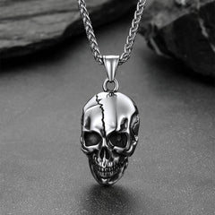 Gothic Skull Necklace with Fissured Skeleton Head for Men